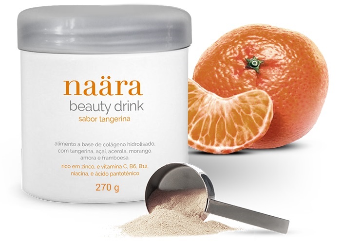 Para quem busca saúde e beleza Naära Beauty Drink é um nutri-cosmético super prático, basta misturar com água e beber, que traz elementos da natureza de forma balanceada para nosso bem-estar e agora também para nossa beleza. Com sabor tangerina é riquíssimo em vitaminas, minerais, aminoácidos, fibras e colágeno hidrolisado realçando a beleza de dentro para fora.