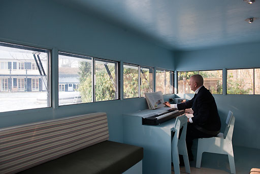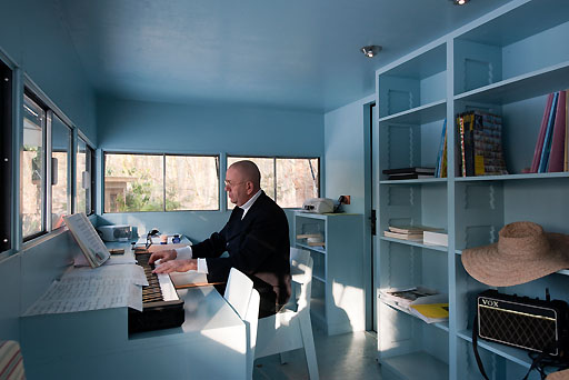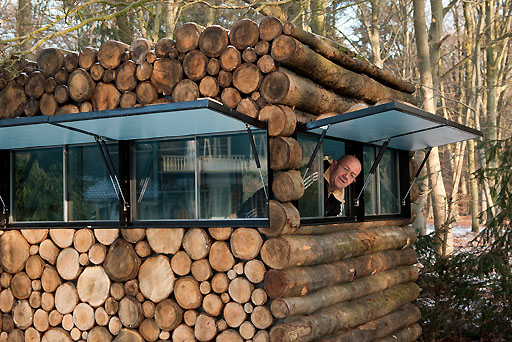 Ele está localizado em Hilversum, Holanda, pertence ao musico Hans Liberg foi desenhado por Piet Hein Eek. Que lugar aconchegante, não é comum a todos. Fachada de log cobre um plástico e armação de aço. É um lugar arejado e bem iluminado e serve como pequeno estúdio de gravação. O quarto tem rodas que a torna transportável.