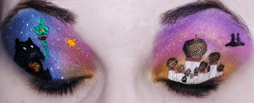 A artista Katie Alves, 21 anos, cria desenhos detalhados usando apenas cosméticos para desenhar cenas deslumbrantes sobre as pálpebras. Katie trabalha como designer gráfico em uma gráfica em Port Perry perto de sua casa em Ontário, no Canadá. No seu tempo livre, usando maquiagem, ela recria cenas de filmes e desenhos originais em sua próprias pálpebras - cada olho demora entre uma e duas horas para ser concluído. Entre os seus favoritos estão cenas de filmes de animação da Disney, como A Pequena Sereia e Rei Leão.